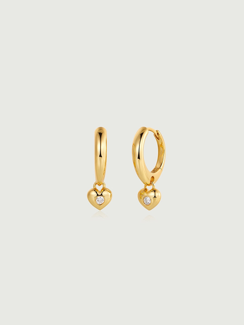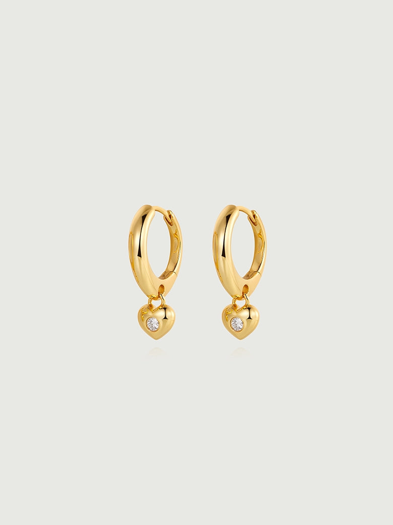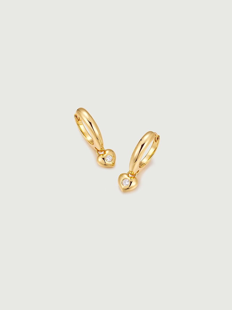 Diamond Heart Charm Hoops