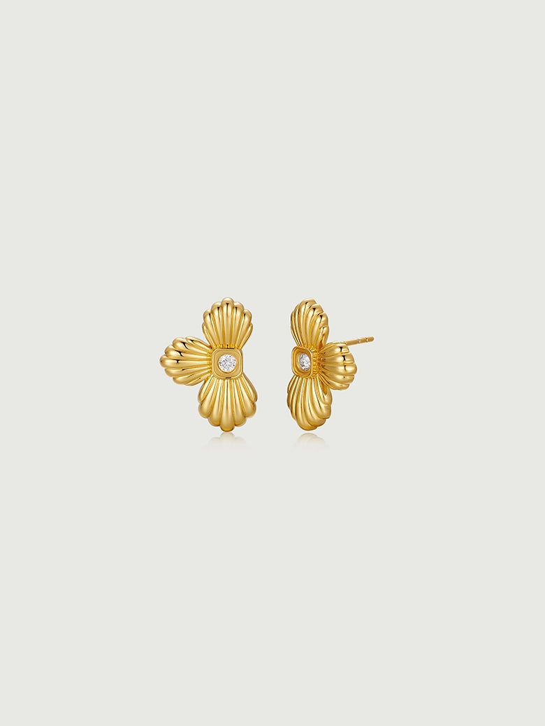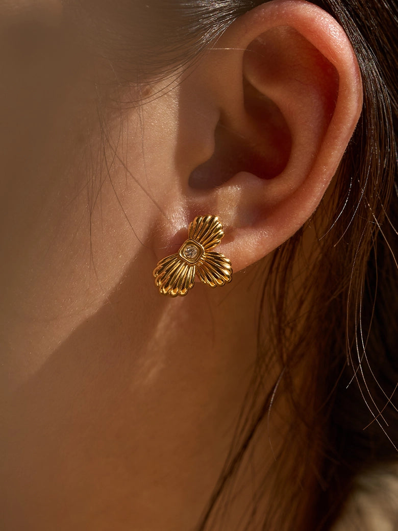 The Clover Studs Earrings feature a softly sculpted leaf silhouette, centered with a single brilliant diamond that catches the light with every turn. Perfectly sized for everyday wear, these studs add just the right amount of shine — whether worn alone for a clean look or layered for a more styled ear.