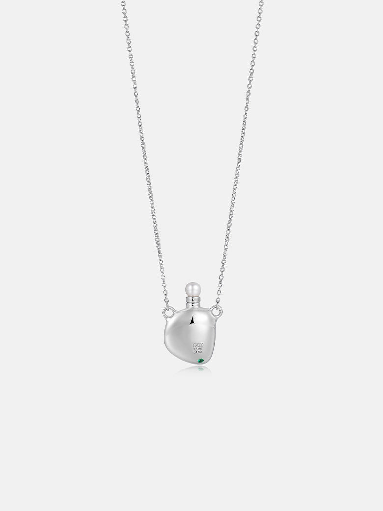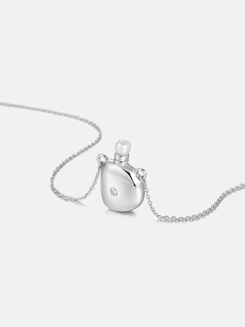 We've enlarged this uniquely shaped "elixir bottle" to create an uncompromisingly eye-catching piece. Crafted from heavy, lustrous sterling silver, this pendant not only adds a highlight to your outfit but also serves as the perfect finishing touch. Adorned with a striking pearl at the top and a dazzling lab-grown diamond in the center, it's a masterpiece of heavy metal alchemy. You can wear it alone, paired with a turtleneck or a deep V-neck. Today, it's the only jewelry you need.