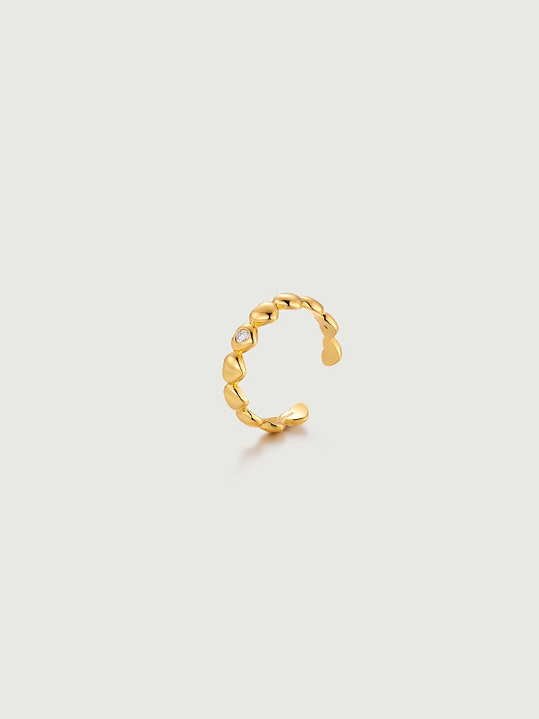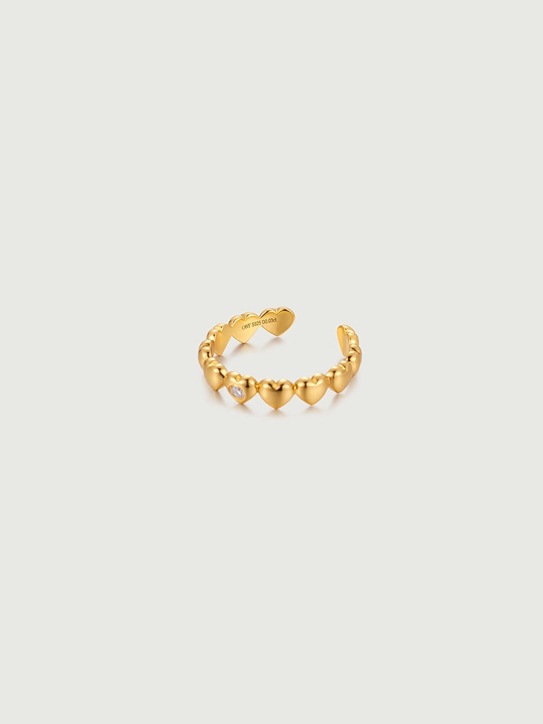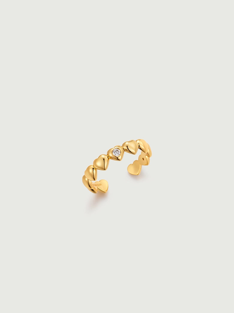 The ring features a continuous band of heart motifs. A dazzling brilliant-cut diamond is set in the central heart, sparkling brilliantly against the cool, smooth metal. It whispers of eternal love—perfect for wearing alone or stacking with other rings for added dimension.