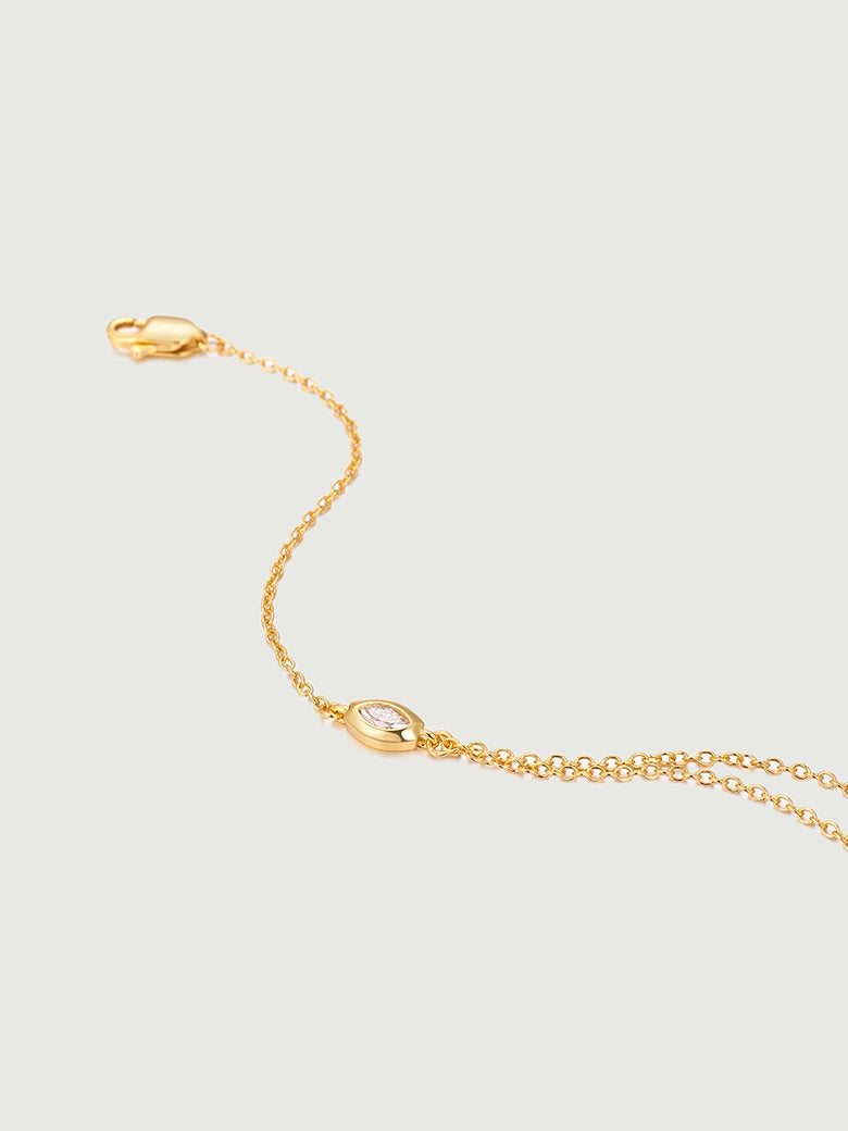 Framed within a seamless gold bezel, the sharp Marquise silhouette is tamed into a smooth, modern form. This fluid chain acts as a delicate anchor, grounding your wrist with a singular point of light. It transcends mere decoration, delivering a polished essential that moves effortlessly from the sunlit clarity of daily rituals to the velvet depth of evening allure.