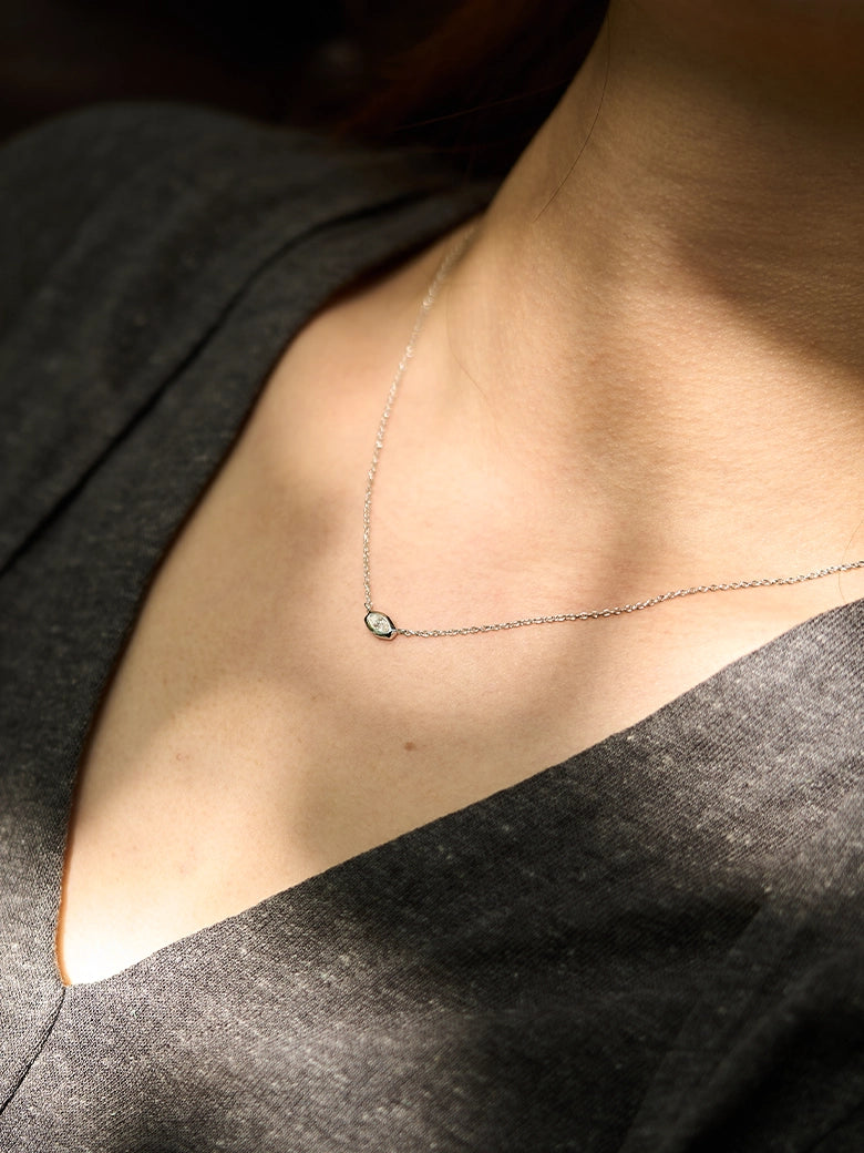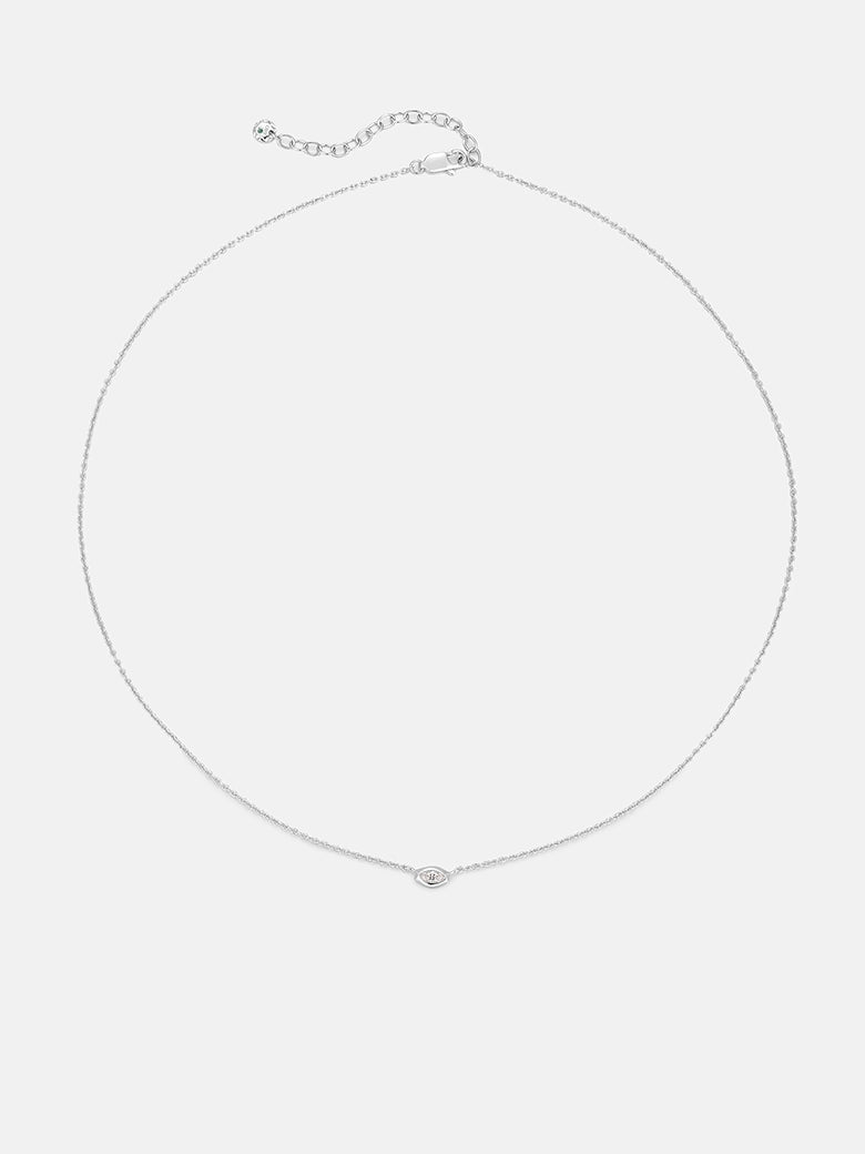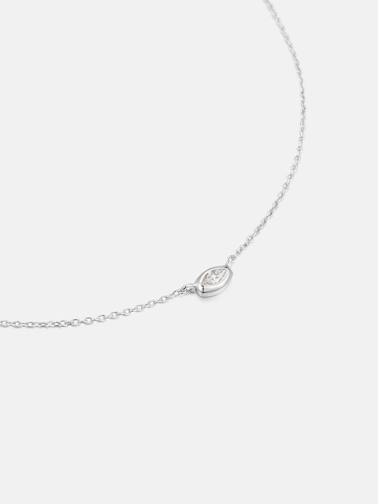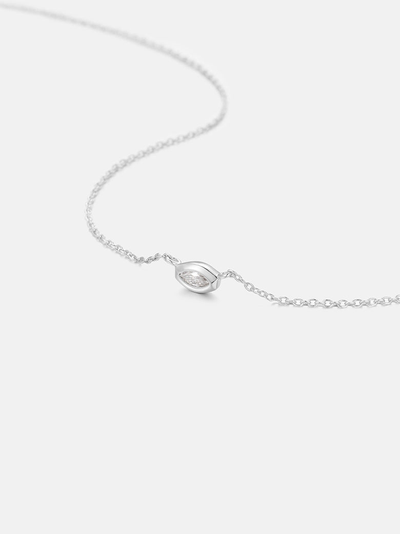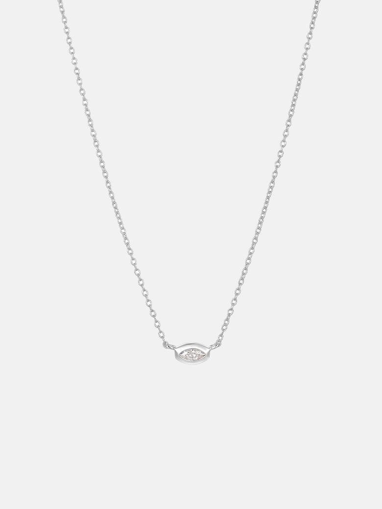 Encased in cool sterling, the bezel-set Marquise captures a pool of unbroken light, its sharp edges smoothed into modern fluidity. This geometric solitaire acts as a luminous anchor, grounding the neckline with understated power. It transcends mere simplicity, delivering an icy, polished finish that shifts seamlessly from the crisp focus of day to the moody elegance of night.