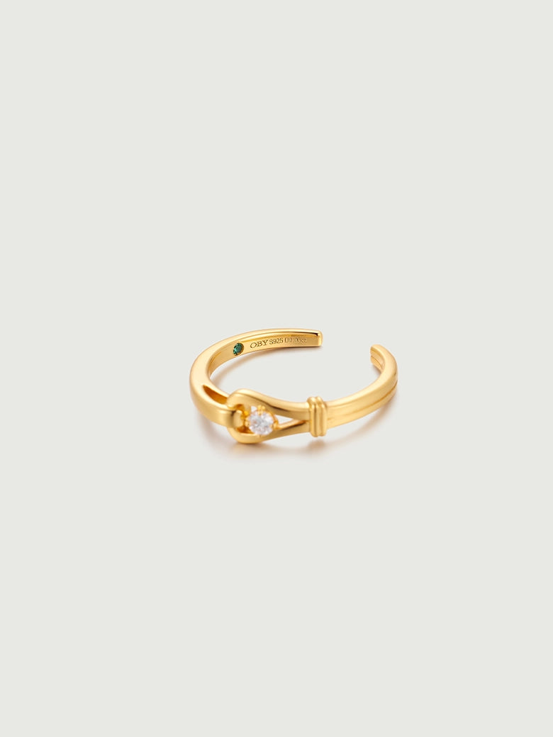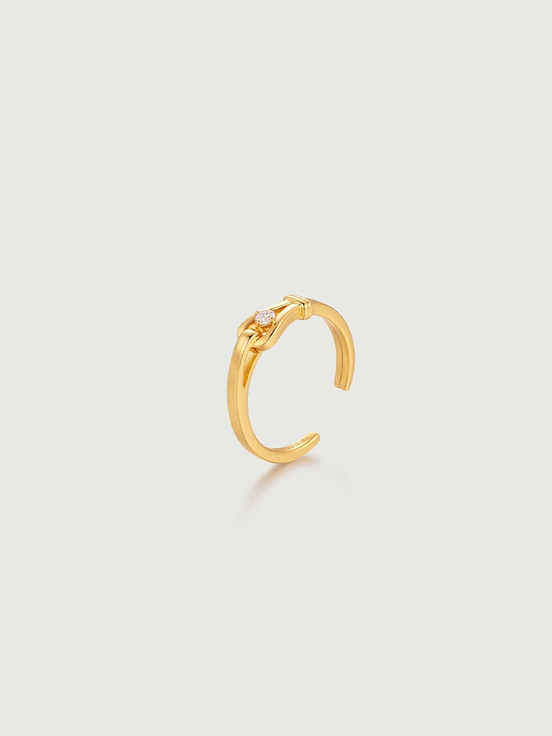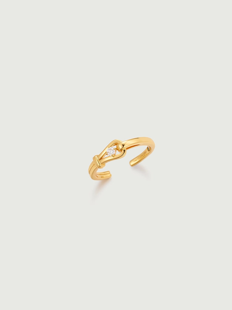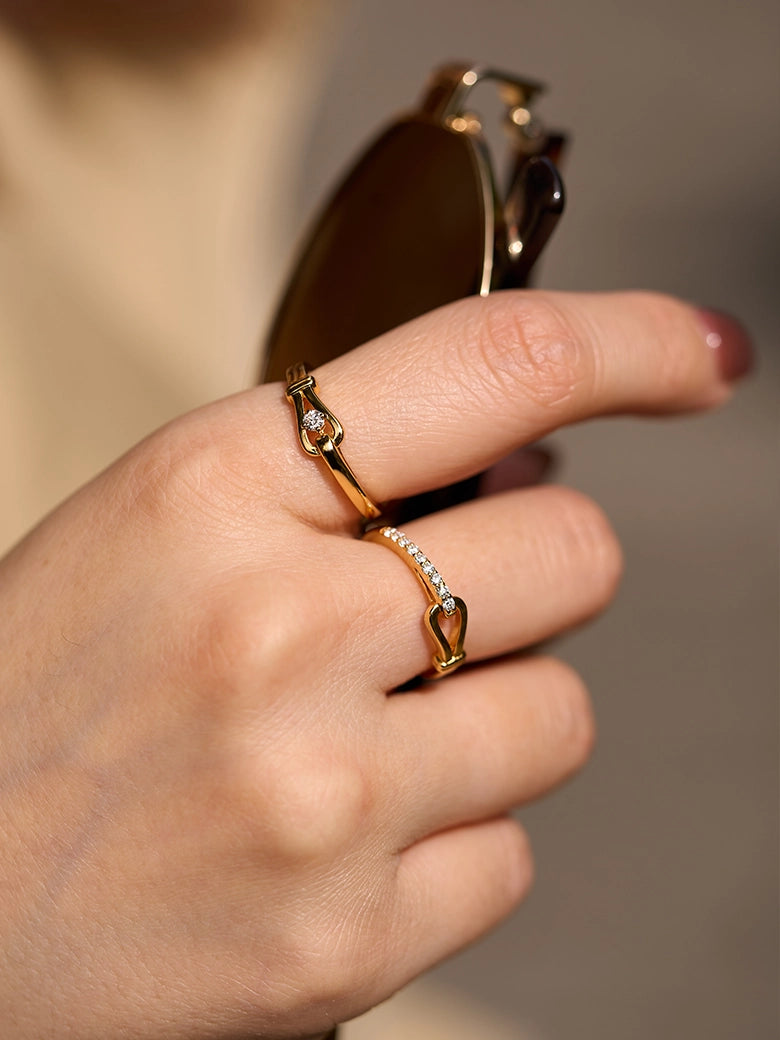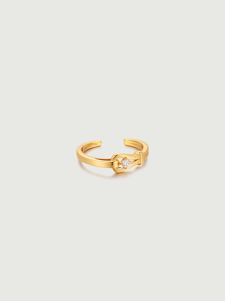 A refined, understated evolution of our signature Luck Collection. This ring captures the essence of the "lucky horseshoe" motif in its purest form. Unlike its pavé counterpart, the Solitaire Luck Ring focuses on clarity and focus. It features a sleek, mirror-polished gold bar that glides into a protective horseshoe loop. At the heart of this union sits a single, brilliant-cut diamond, securely nestled like a captured star. It symbolizes a focused intention—a singular wish for luck and prosperity kept close at hand.