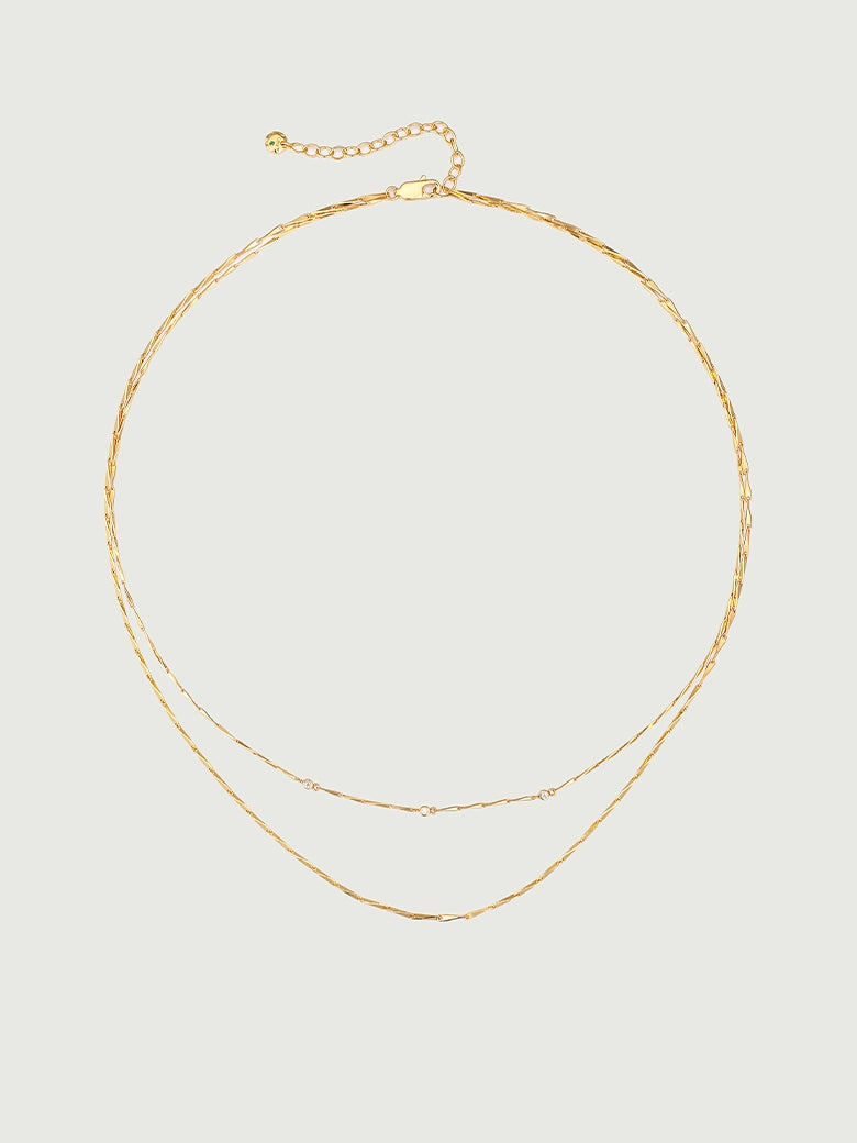 The design features a fine yet durable chain punctuated by three round brilliant-cut Moissanites. Positioned centrally along the collarbone, these stones offer a fire and brilliance that rivals the finest diamonds. Whether worn solo for a touch of everyday shimmer or as the shimmering top tier of a necklace stack, it captures light with every breath.