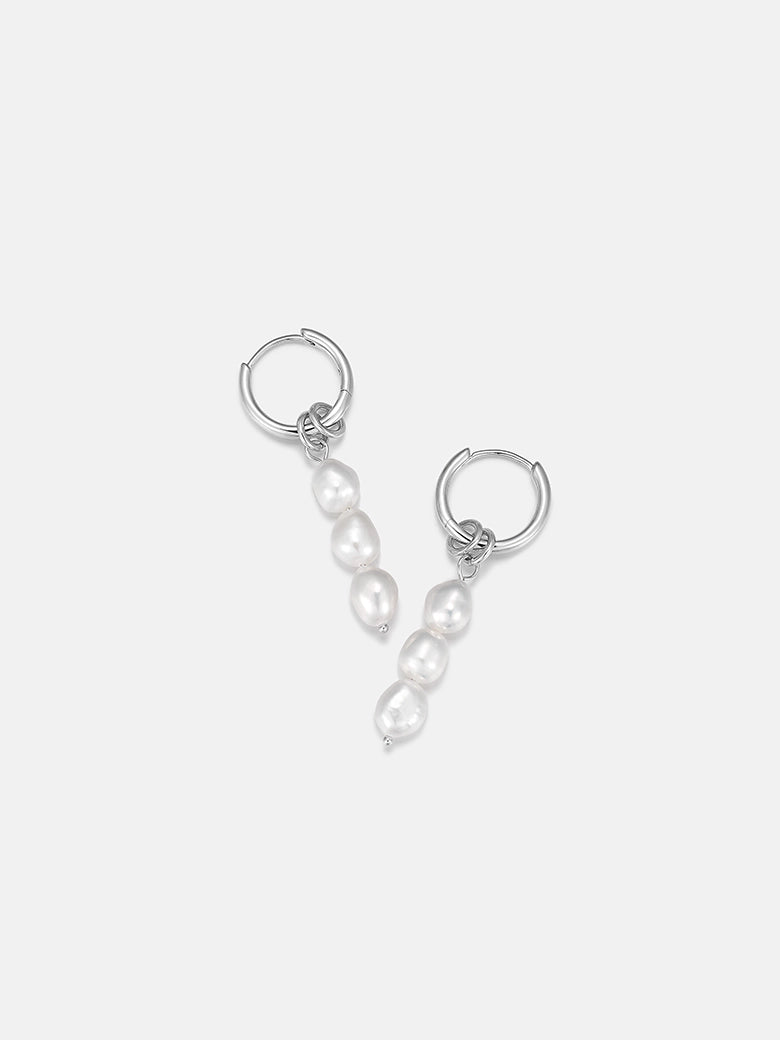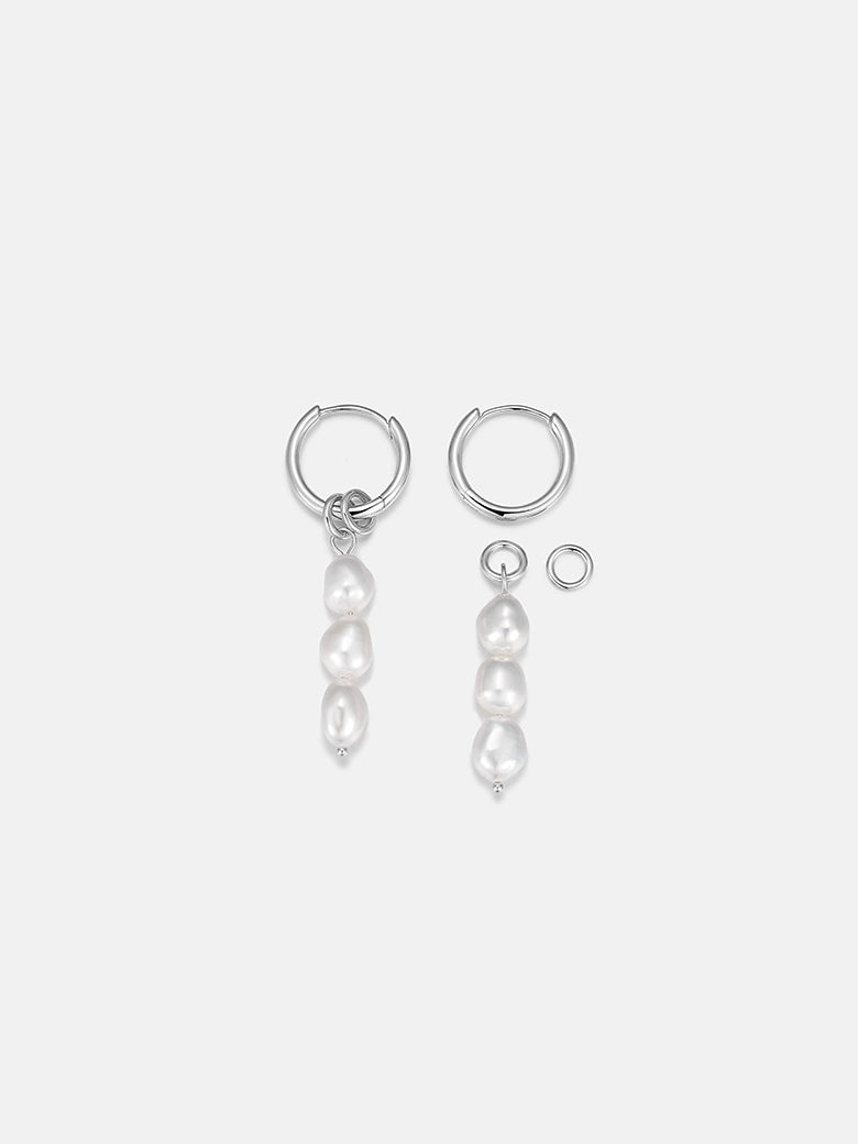 The trio of natural freshwater pearls can be easily slipped off the sterling silver hoop. Wear the hoops alone for a minimalist, everyday look, or slide the pearls back on for instant sophistication. It’s effortless, practical, and perfectly adaptable to whatever you're wearing.